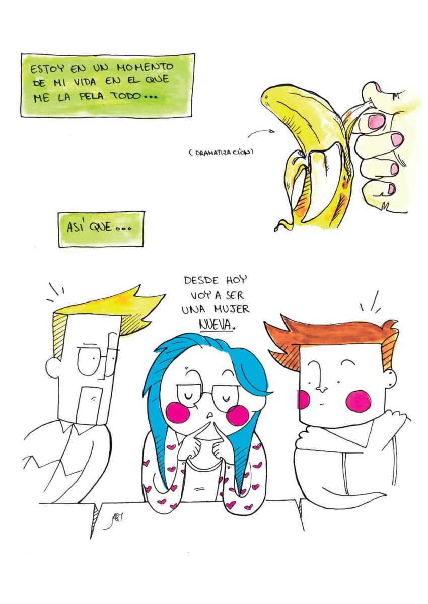 “Si tú y tus amigos siempre acabáis hablando de sexo, comida o mierda, te sentirás como uno más entre los protagonistas de ‘Pajas Mentales’. Y de paso, descubrirás un universo lleno de sirenas chonis, piedras marujas, unipornios (sí, con P) y otras paranoias que salen de la loca y fantástica cabeza de Sara Jotabé.