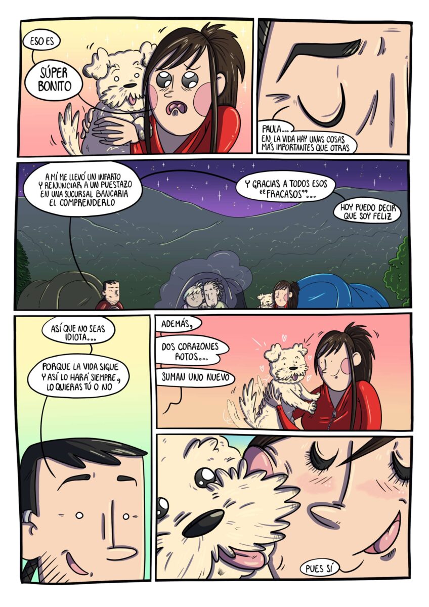 El cómic más especial para mí hasta la fecha. Esta obra marca un antes y un después en mi trayectoria tanto de forma profesional como personal. Y es que con una divertida, amena, y dulce primera lectura, esconde tras de sí mucho más de lo que podrías imaginar. Una aventura por los Pirineos (y por nuestros adentros) que hará las delicias de cualquier lector ávido de humor y emociones. Además, si te gustan los perros no podrás evitar caer enamorado de su particular partenaire.